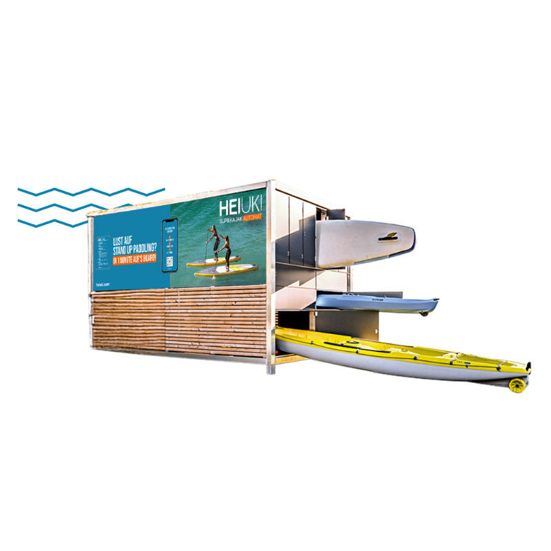De Micron SUP & Kano Verkoopautomaat is een volledig geautomatiseerd verhuurstation dat 24/7 stand-up paddleboard (SUP) en kanoverhuur mogelijk maakt zonder toezicht van personeel. Ontworpen voor locaties aan het water, waaronder stranden, meren en rivieren, slaat dit innovatieve systeem tot 14 stuks materiaal op in veilige kluisjes. Klanten kunnen transacties voltooien via mobiele betaling of kaart bij de verkoopautomaat en vervolgens toegang krijgen tot hun gehuurde materiaal. Deze kant-en-klare oplossing biedt ondernemers een passieve inkomstenstroom met weinig onderhoud, terwijl het buitenliefhebbers gemakkelijke toegang biedt tot watersportmateriaal.